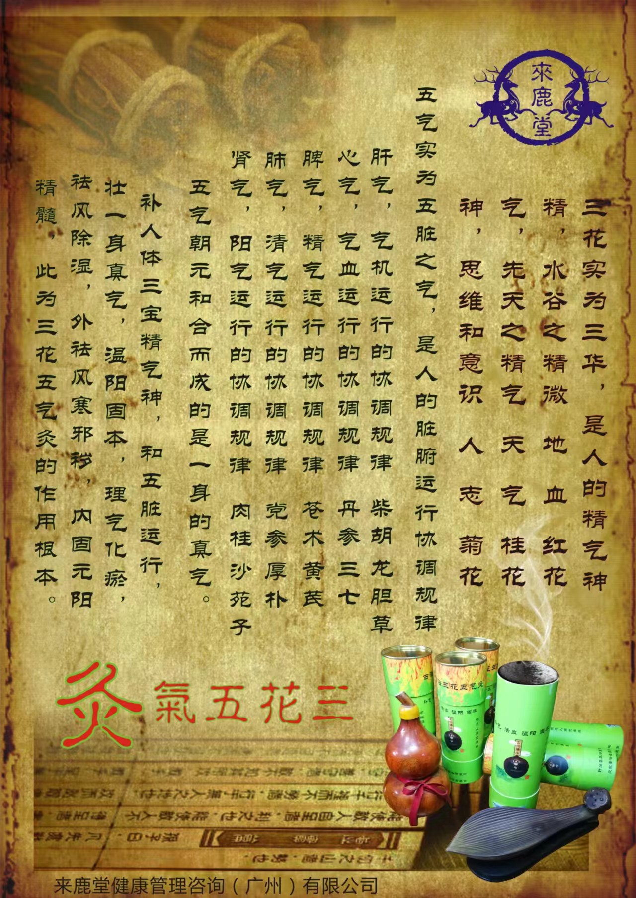五气朝元和合而成的是一身的真气。 补人体三宝精气神,和五脏运行,壮一身真气,温阳固本,理气化瘀,祛风除湿,外祛风寒邪秽,内固元阳精髓,此为三花五气灸的作用根本。
